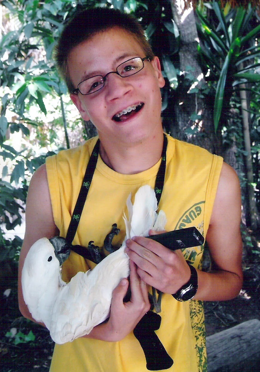 Ik ben echt fier op Sander. Ik zie hem zooooo graag. Ik kan me geen leven voorstellen zonder hem. Hij blijft een heel gemakkelijke jongen die zich nooit verveelt, altijd goed gezind is, heel graag alleen op zijn kamer zit met zijn I-pod waarop hij naar filmpjes op You Tube kijkt, zeker en vast goed de weersvoorspellingen opvolgt, games speelt, .... Maar hij is ook graag onder de mensen, en is dan vooral de stille genieter. Zo is hij heel blij met Ekseeko, een vereniging hier in de druivenstreek die 2x per maand een vrijetijdsactiviteit voor jongvolwassenen met een handicap organiseert : 1 zaterdagavond per maand naar een praat/danscafé en 1x per maand een andere activiteit. Je kiest zelf aan welke activiteit je deelneemt. En ik vind het heel fijn dat Sander zelf goed kan aangeven wat hij wil mee doen en wat liever niet. Zijn lievelingsbezigheid is, is meerijden met mijn broer Daniel als die gaat leveren aan natuurwinkels. Terwijl Daniel de bestelling aflevert, stelt Sander de gps in naar de volgende klant. Sander geniet met volle teugen van het zot doen van Daniel. Eens thuis kan hij goed vertellen waar hij overal is geweest en gaat hij via Street View de afgelegde weg terug herbekijken op zijn I-pod. Sander is ook behulpzaam en is altijd bereid te helpen als de activiteiten geen zware fysieke inspanning vragen. Een tijdje terug kwam hij zelf vragen of hij de wortelen mocht schrapen wat mij veel plezier deed. Sindsdien is hij op woensdag de "patattenschiller van dienst" en heeft hij er deugd aan zijn bijdrage te kunnen leveren.